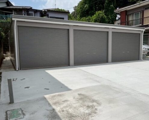 イナバ アルシア 電動シャッター付き 3台用ガレージ設置|千葉県松戸市 某企業 駐車場リフォーム工事