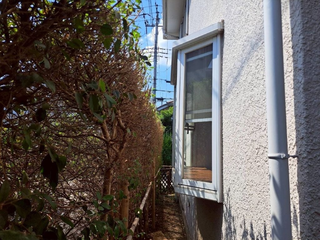 - 窓付近まで伸びた枝葉が、通風・採光を妨げている