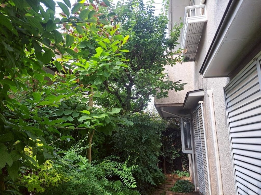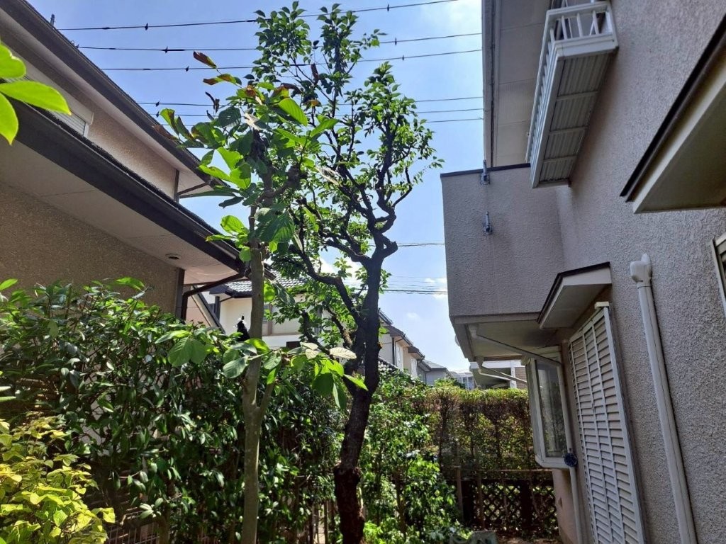 建物側に張り出していた枝葉はすべてカット。窓の開閉やメンテナンスの妨げがなくなり、風通しも大幅に改善しました。