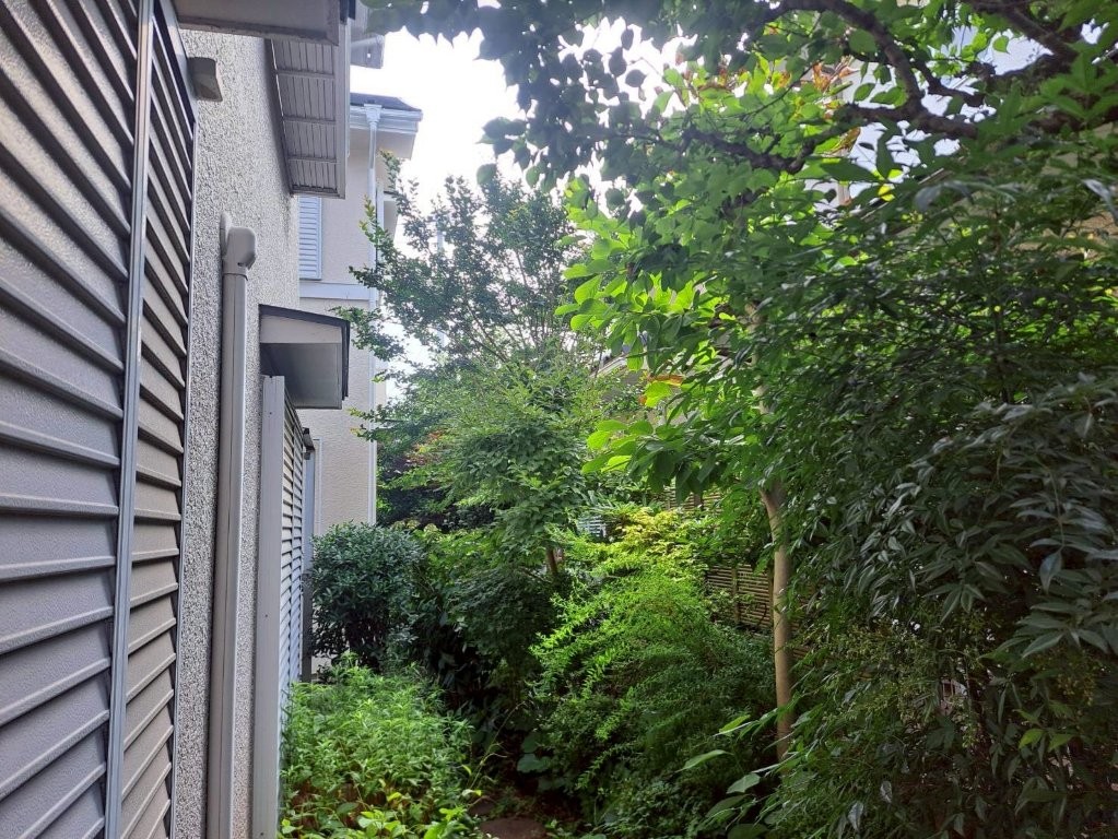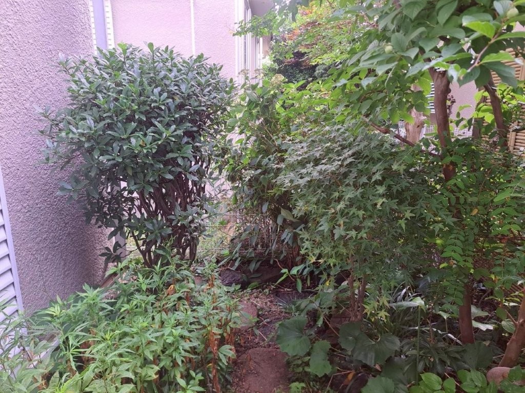 敷地内の通路・庭スペースに繁茂している庭木全体の様子