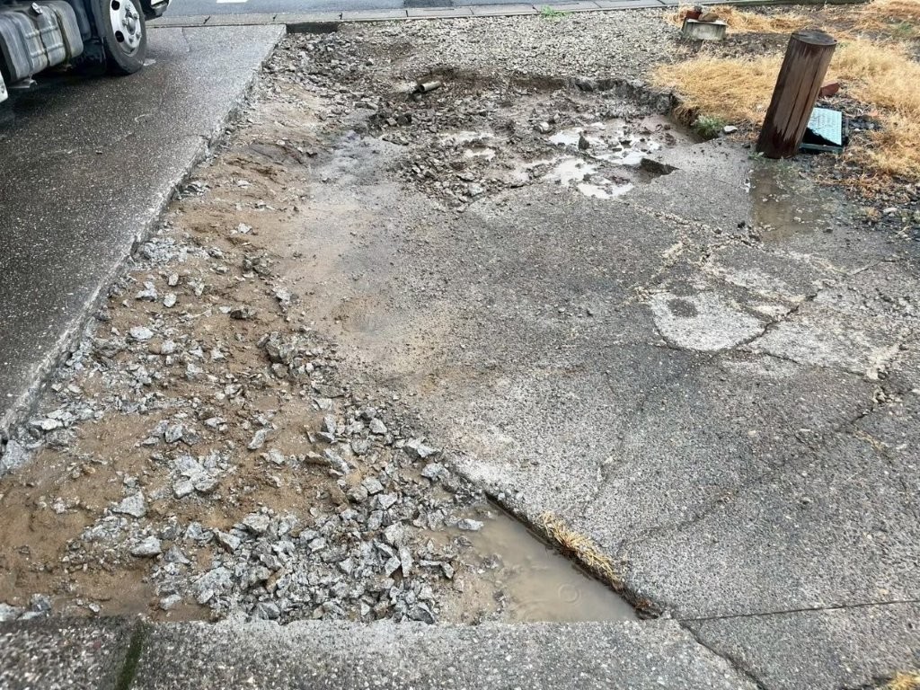 「駐車場のコンクリートがひび割れて陥没している」