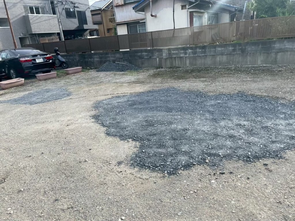 施工後は、駐車場がフラットで水はけの良い砕石仕上げとなり、車の出し入れが快適になりました。