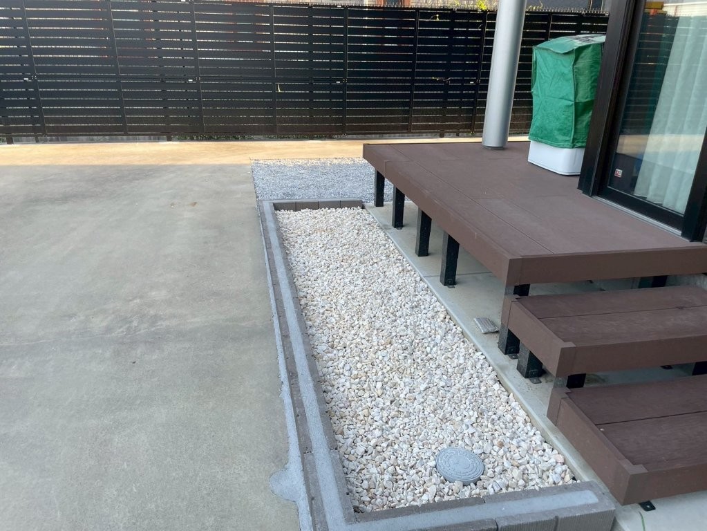 また、雨が降ったあとは地面がぬかるみ、靴が泥で汚れてしまったり、デッキや玄関まわりに泥はねがついたりと、生活に不便を感じやすい状況でした。