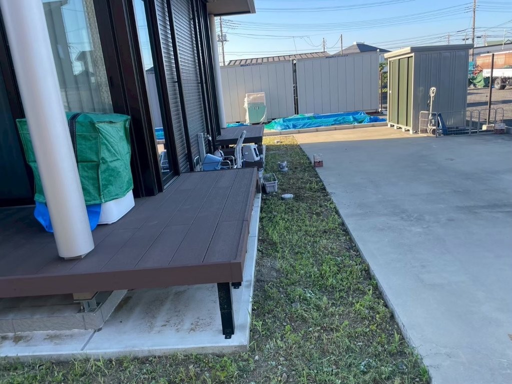 デッキ周りや建物の外周部分は特に雑草が生えやすく、ちょっと気を抜くと一面に草が広がってしまうため、日常の草取りや除草作業が大きな負担となっていました。
