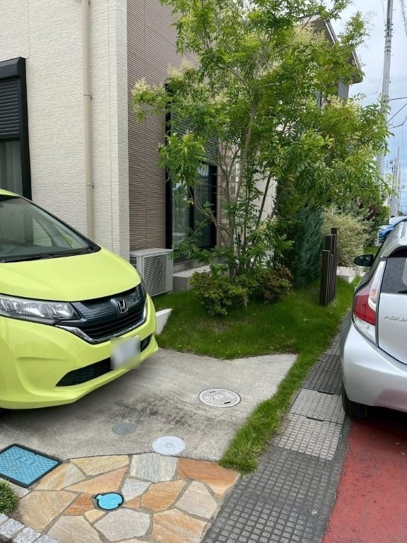 ピンコロを入れることで、雑草対策だけでなく、駐車場全体のデザイン性が一気に向上します。