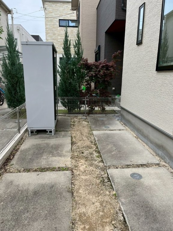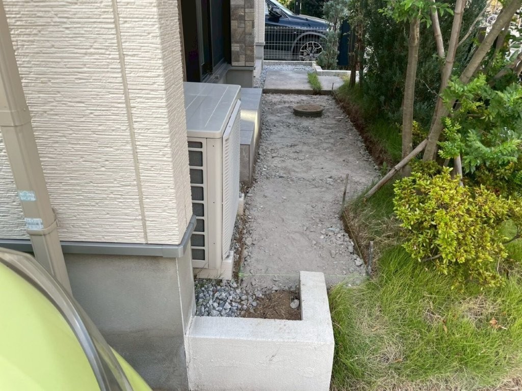 また、建物脇から庭にかけては土のままの動線となっており、雨天時は足元が悪く、日常的なメンテナンス負担も大きい状況でした。