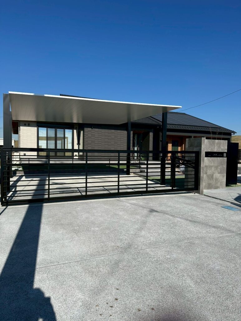 屋根材までアルミで統一されたデザインのため、外構だけが浮くこともなく、新築住宅全体と自然に馴染んでいます。