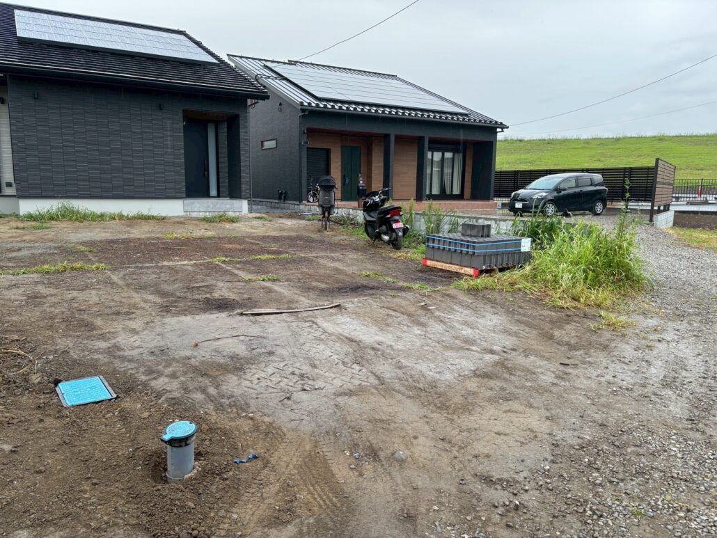 一見すると整った敷地に見えますが、新築外構の場合は 建物・道路・隣地との高低差、車と人の動線、夜間の安全性 など、事前に整理しておくべき課題が多くあります。