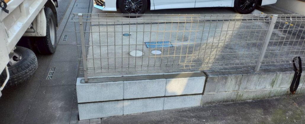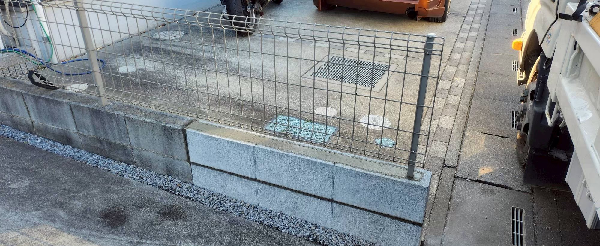 | 施工内容詳細 | 破損ブロックの撤去作業 既存基礎の状態確認・調整 新規コンクリートブロックの据え付け・積み直し モルタルによる目地補修・固定処理 既存フェンスの位置調整および復旧 全体の水平・通り確認および仕上げ清掃 |